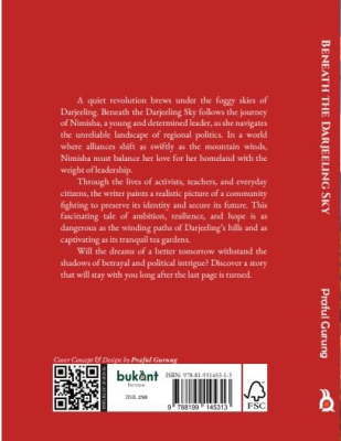 A quiet revolution brews under the foggy skies of Darjeeling. Beneath the Darjeeling Sky follows the journey of Nimisha, a young and determined leader, as she navigates the unreliable landscape of regional politics. In a world where alliances shift as swiftly as the mountain winds, Nimisha must balance her love for her homeland with the weight of leadership. Through the lives of activists, teachers, and everyday citizens, the writer paints a realistic picture of a community fighting to preserve its identity and secure its future. This fascinating tale of ambition, resilience, and hope is as dangerous as the winding paths of Darjeeling’s hills and as captivating as its tranquil tea gardens. Will the dreams of a better tomorrow withstand the shadows of betrayal and political intrigue? Discover a story that will stay with you long after the last page is turned.
