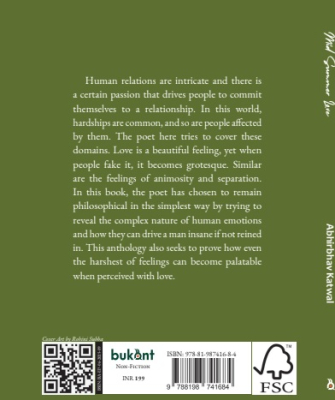 Human relations are intricate and there is a certain passion that drives people to commit themselves to a relationship. In this world, hardships are common, and so are people affected by them. The poet here tries to cover these domains. Love is a beautiful feeling, yet when people fake it, it becomes grotesque. Similar are the feelings of animosity and separation. In this book, the poet has chosen to remain philosophical in the simplest way by trying to reveal the complex nature of human emotions and how they can drive a man insane if not reined in. This anthology also seeks to prove how even the harshest of feelings can become palatable when perceived with love.